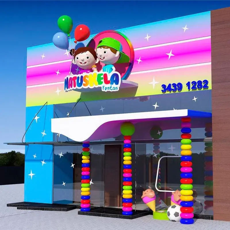 Apresentamos as Fachadas de Fibra, uma solução inovadora e atraente para decoração de ambientes infantis. Ideais para buffets, parques e áreas kids, essas fachadas transformam qualquer espaço em um cenário lúdico e encantador, capturando a atenção das crianças e criando uma experiência visual inesquecível.